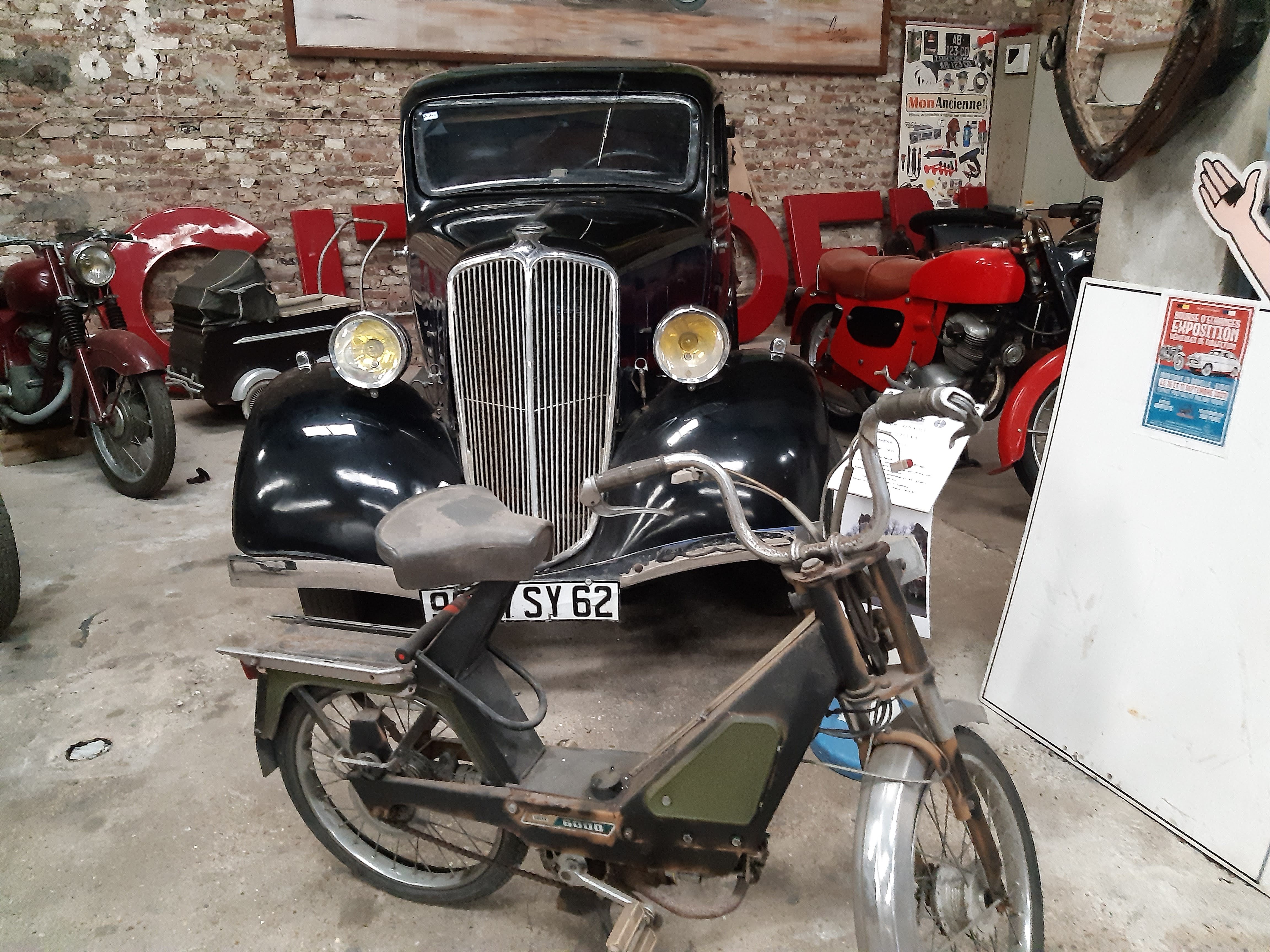 Annie et Bernard nous ont fait découvrir les Brigades de l’AA, une association qui regroupe des amateurs de véhicules anciens (autos, 2 roues, camions, engins agricoles, etc…) située dans une ancienne papeterie du 19ème siècle. Le musée remonte le temps avec plus de 150 véhicules datant de la fin du 19ème siècle aux années 80. Ces véhicules participent également à des tournages de films tels que « Les Petits Meurtres d’Agatha Christie » sur France 2.